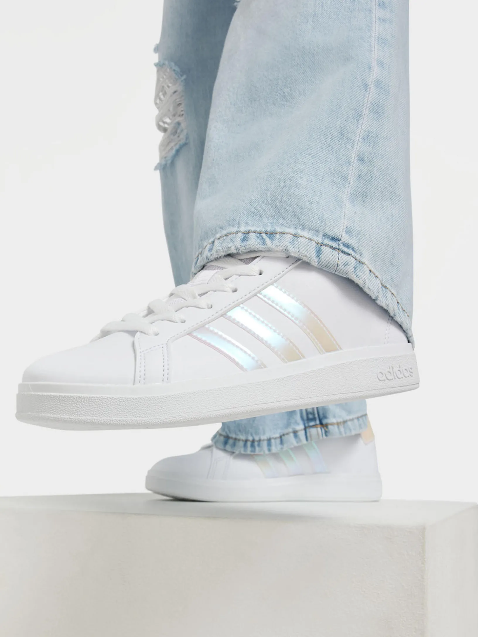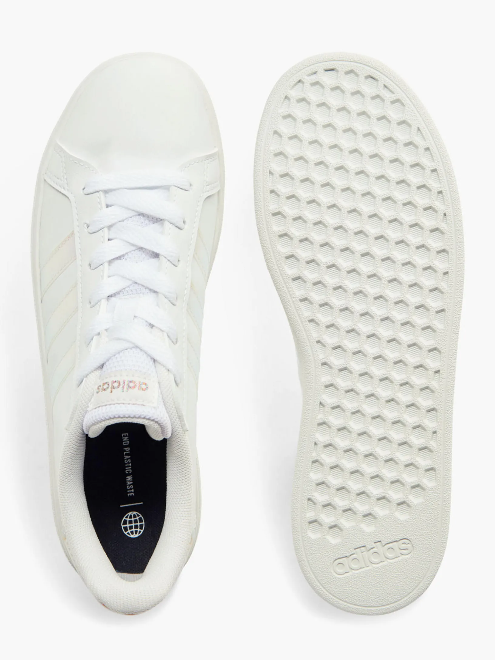 adidas hat dem klassischen Grand Court für Kinder ein modernes Update verpasst. Das Obermaterial aus weichem Synthetikleder steckt beim Spielen und Toben jede Menge ein, während die flexible Gummi-Cupsohle wachsende Kinderfüße schützt und ihnen Stabilität gibt. Wen wundert es da noch, dass dieser Schuh nicht nur die Kleinen begeistert? Das Obermaterial ist mit verschiedenen recycelten Materialien hergestellt und hat einen Recycling-Anteil von mindestens 50 %.