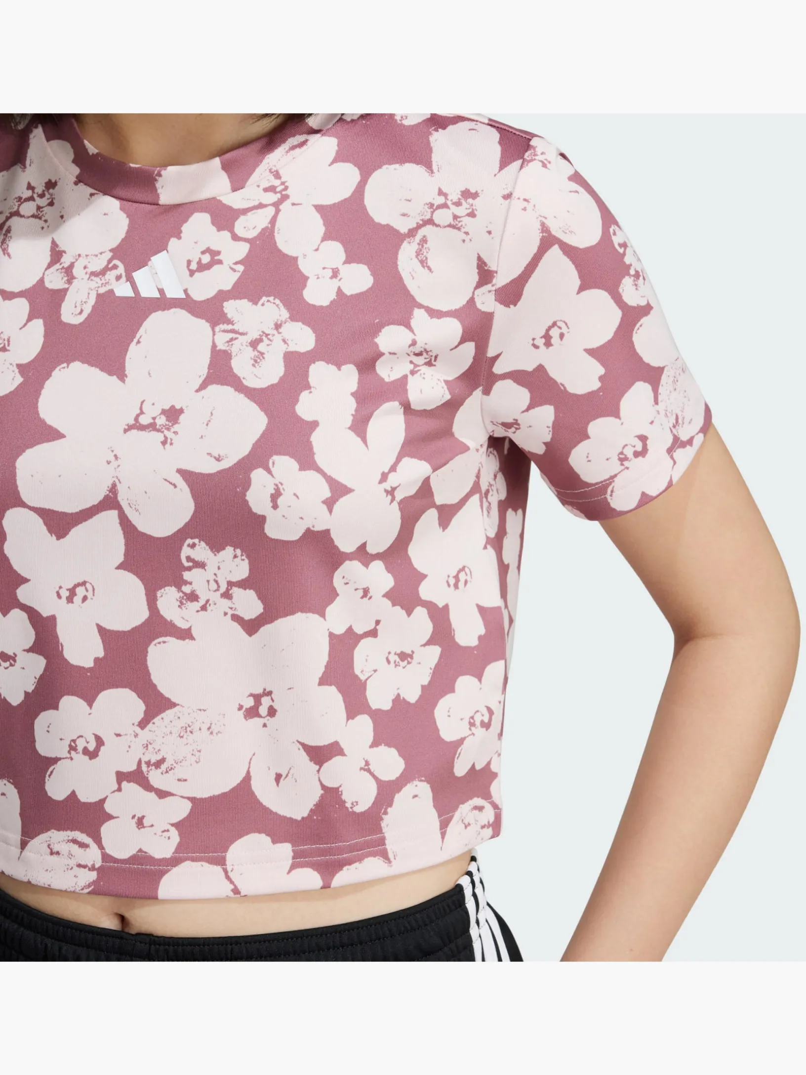 Vielseitig und stylish – dieses kürzer geschnittene adidas T-Shirt für Kinder und Teens macht jedes Training mit. Die feuchtigkeitsabsorbierende AEROREADY Technologie garantieren dir beim Auspowern ein angenehm trockenes und frisches Tragegefühl. Egal, ob beim Workout, Training oder Abhängen mit Freund_innen, der fröhliche Blumenprint sorgt für gute Laune. Die figurnahe Passform rundet das Ganze ab. So kannst du dich voll und ganz auf deine Trainingsziele fokussieren.Dieses Produkt ist mit mindestens 70 % recycelten Materialien hergestellt. Die Wiederverwendung bereits vorhandener Materialien hilft uns dabei, Müll zu reduzieren, unsere Abhängigkeit von nicht erneuerbaren Ressourcen einzuschränken und den CO2-Fußabdruck unserer Produkte zu verringern.